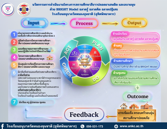 ชื่อผลงาน การปฏิบัติงานที่เป็นเลิศ (Best Practice) โครงการสถานศึกษาสีขาว ปลอดยาเสพติด และอบายมุข ด้วย BRIGHT Model ฉลาดรู้ ฉลาดคิด ฉลาดปฏิเสธ ของโรงเรียนอนุบาลวัดหนองขุนชาติ (อุทิศพิทยาคาร) สำนักงานเขตพื้นที่การศึกษาประถมศึกษาอุทัยธานี เขต 2