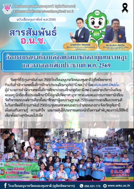 วันศุกร์ที่ 6 กุมภาพันธ์ พ.ศ. 2569 โรงเรียนอนุบาลวัดหนองขุนชาติ (อุทิศพิทยาคาร) ร่วมกับสำนักงานเขตพื้นที่การศึกษาประถมศึกษาอุทัยธานี เขต 2 นำโดย ดร.สมเพชร มัชปะโม ผู้อำนวยการสำนักงานเขตพื้นที่การศึกษาประถมศึกษาอุทัยธานี เขต 2 และฝ่ายบริหารโรงเรียน คณะครู