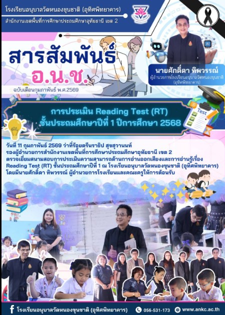 วันที่ 11 กุมภาพันธ์ 2569 ว่าที่ร้อยตรีนราธิป สุขสุวานนท์ รองผู้อำนวยการสำนักงานเขตพื้นที่การศึกษาประถมศึกษาอุทัยธานีเขต 2 ตรวจเยี่ยมสนามสอบ RT ชั้นประถมศึกษาปีที่ 1